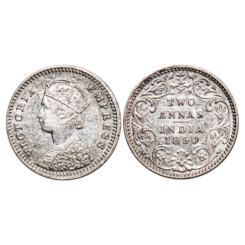 Victoria Empress, Silver, 2 Annas, 1890, Bombay Mint, B/II, ‘B’ incused. F. Prid 545. GK 792. Almost Uncirculated. Very Scarce.