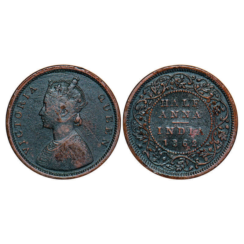 Victoria Queen, Copper, Half Anna, 1862, Madras Mint, A/I, Smugged type flowers. F. Prid 577. GK 39...