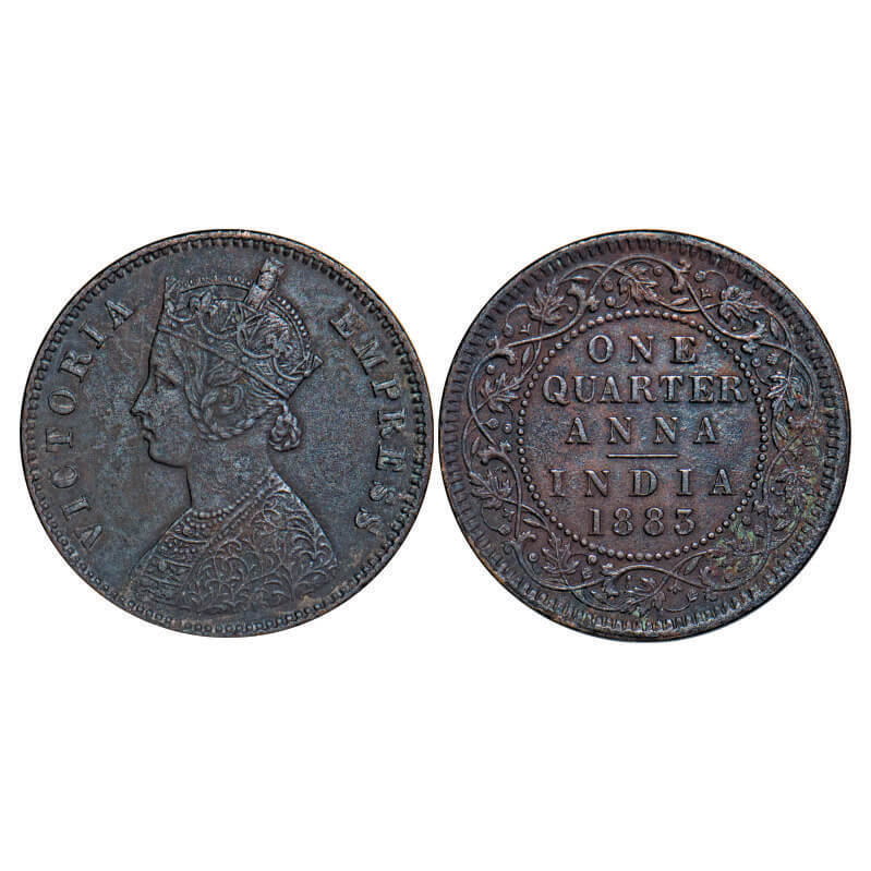 Victoria Empress, Copper, Quarter Anna, 1883, Calcutta Mint, B/II, āCā incused. F. Prid 616. GK 837. Extremely Fine. Scarce.