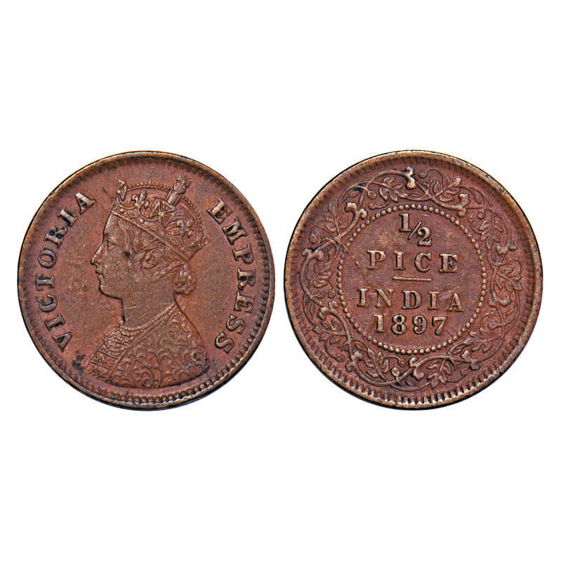 Victoria Empress, Copper, 1/2 Pice, 1897, Calcutta Mint, A/I, No mint mark, Ghost on Rev. F. Prid 7...