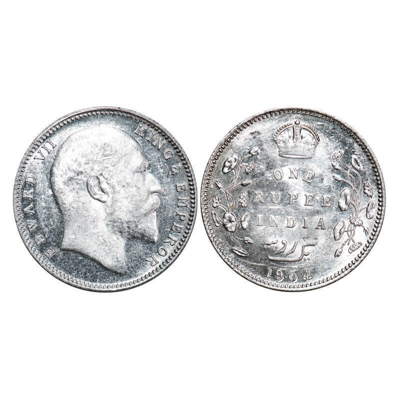 Edward VII, Silver, Rupee, 1904, Bombay Mint, ‘B’ incused and dot, Five Diamonds and bottom stroke of numeral 4 short, Ghost on Obv and Rev. F. Prid 200. GK 932. Brilliant Uncirculated. Very Scarce.