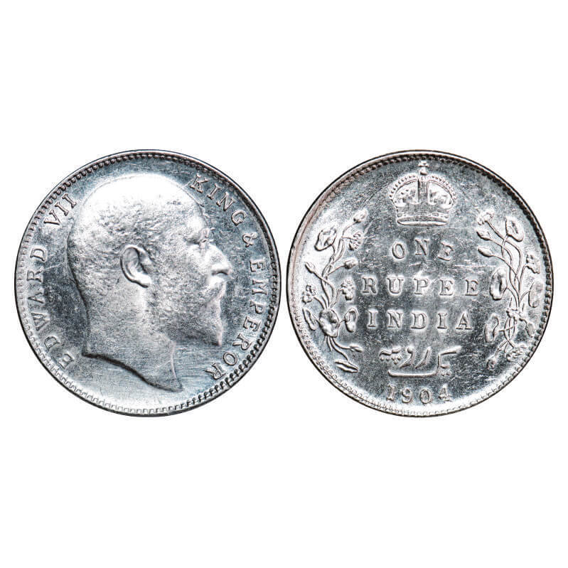 Edward VII, Silver, Rupee, 1904, Bombay Mint, ‘B’ incused and dot, Five Diamonds and bottom stroke of numeral 4 short. F. Prid 200. GK 932. Uncirculated. Very Scarce.