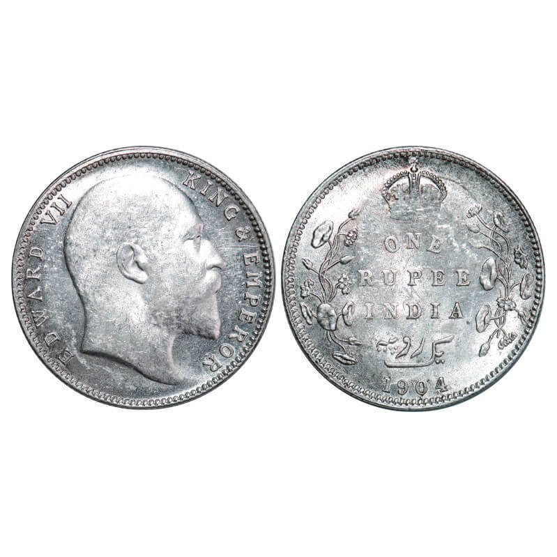 Edward VII, Silver, Rupee, 1904, Bombay Mint, ‘B’ incused and dot, Five Diamonds and bottom stroke of numeral 4 short, Ghost on Rev. F. Prid 200. GK 932. About Uncirculated. Very scarce.