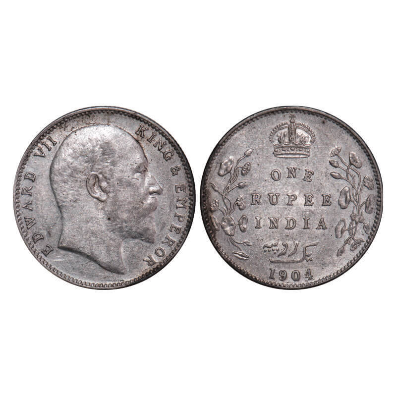 Edward VII, Silver, Rupee, 1904, Bombay Mint, ‘B’ incused and dot, five Daimonds and bottom stroke of numeral 4 short. F. Prid 200. GK 932. Almost Uncirculated, Toned. Scarce.