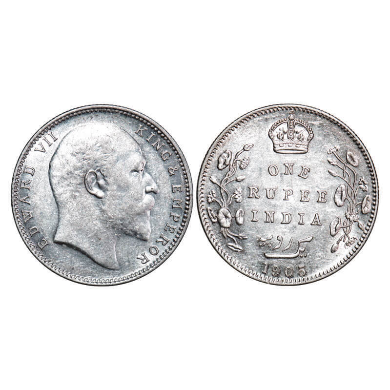 Edward VII, Silver, Rupee, 1905, Bombay Mint, ‘B’ incused and dot, Top stroke of numeral 5 long. F. Prid 201. GK 936. About Uncirculated. Scarce.