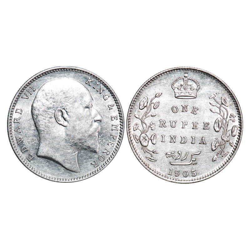 Edward VII, Silver, Rupee, 1905, Bombay Mint, ‘B’ incused and dot, Top stroke of numeral 5 long. F. Prid 201. GK 936. Almost Uncirculated. Very Scarce.