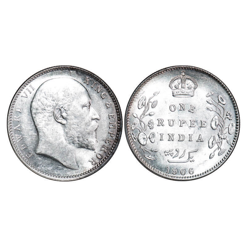 Edward VII, Silver, Rupee, 1906, Calcutta Mint, No mint mark. F. Prid 192. GK 938. Uncirculated. Very Scarce.