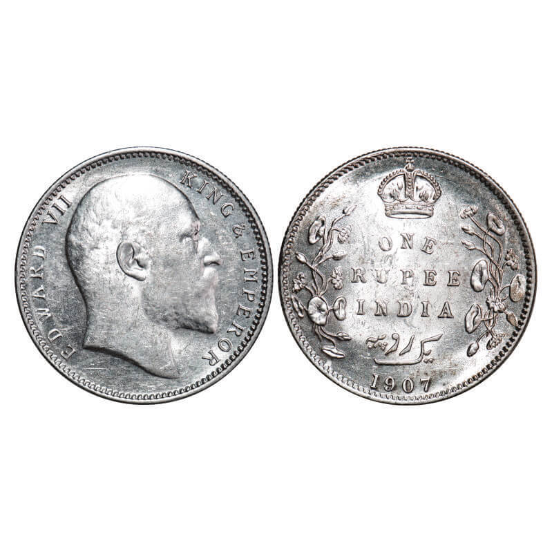 Edward VII, Silver, Rupee, 1907, Calcutta Mint, No mint mark. F. Prid 193. GK 942. Almost Uncirculated. Very Scarce.
