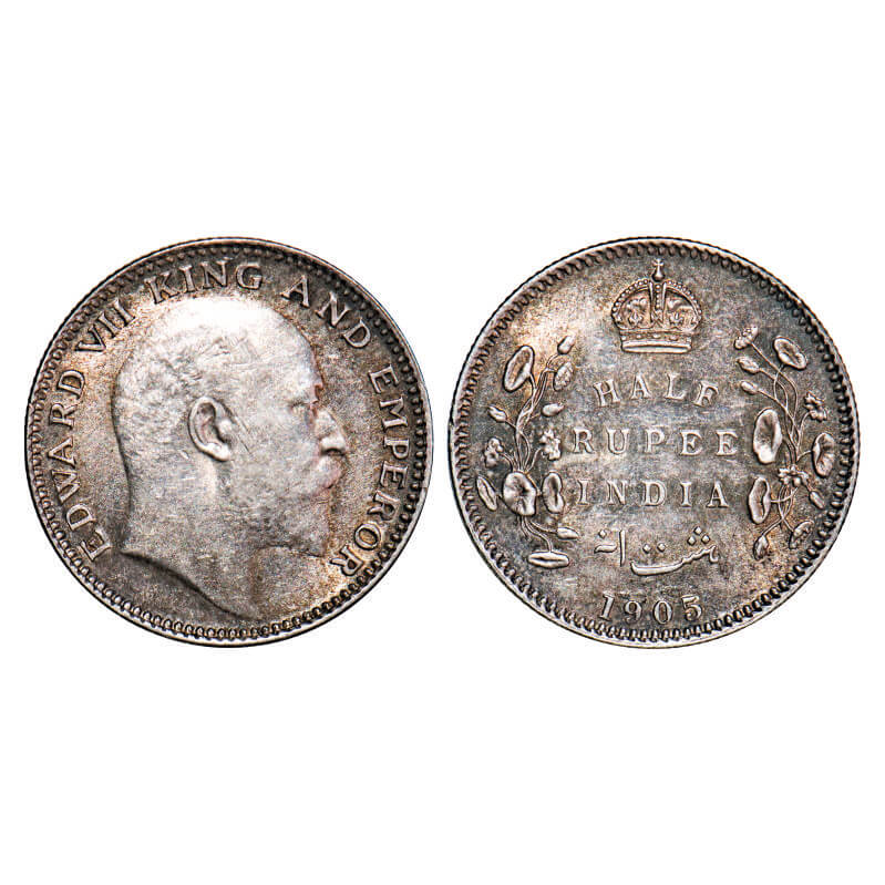 Edward VII, Silver, Half Rupee, 1905, Calcutta Mint, No mint mark. F. Prid Unlisted. GK 960. About Uncirculated. Very Scarce.