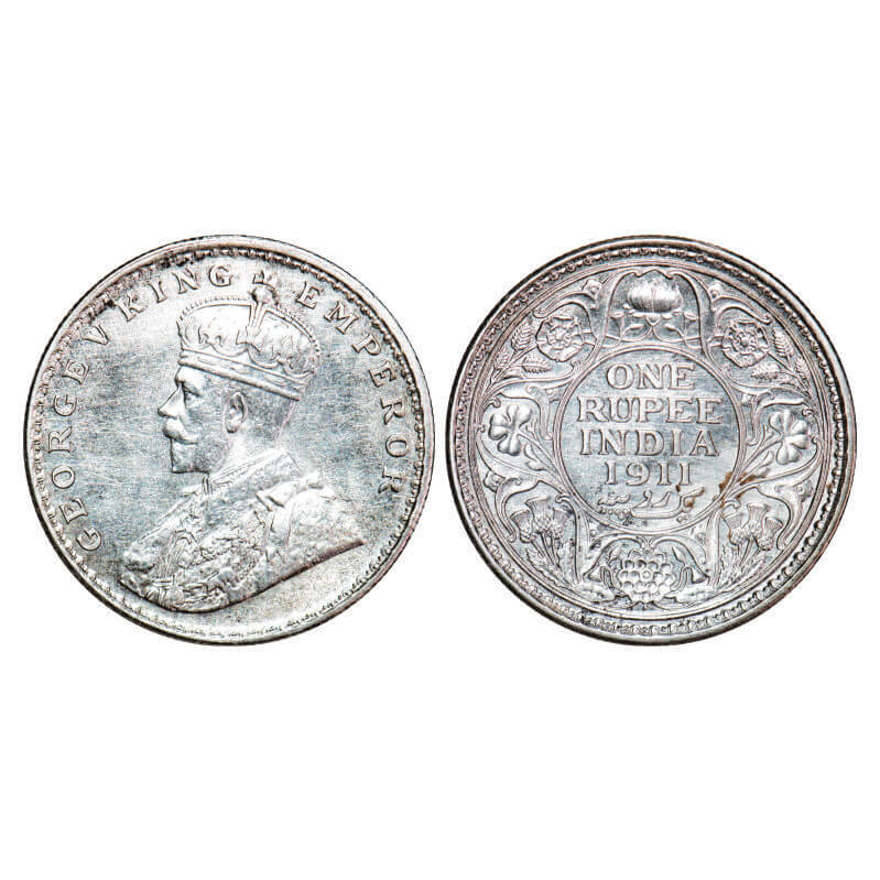 George V, Silver, Rupee, 1911, Calcutta Mint, No dot, Pig-Type, Raised initials ‘B M’ (Bertaram Mac...
