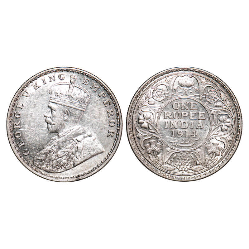 George V, Silver, Rupee, 1914, Calcutta Mint, No dot. F. Prid 210. GK 1029. Uncirculated. Scarce....