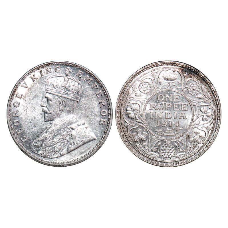 George V, Silver, Rupee, 1914, Bombay Mint, Dot. F. Prid 220. GK 1030. Brilliant Uncirculated. Rare...