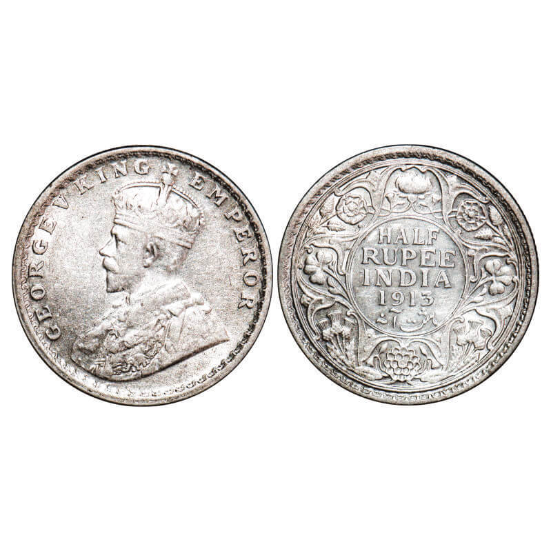 George V, Silver, Half Rupee, 1913, Calcutta Mint, No dot. F. Prid 320. GK 1048. Extremely Fine. Scarce.