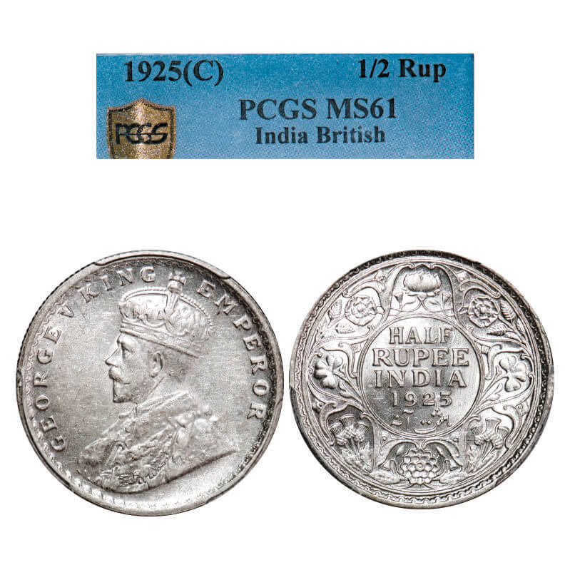 George V, Silver, Half Rupee, 1925, Calcutta Mint, No dot. F. Prid 328. GK 1065. PCGS Slabbed MS 61. Rare.