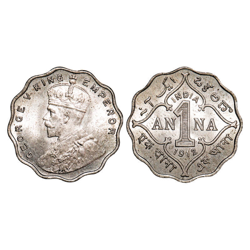 George V, Copper-Nickel, 1 Anna, 1912, Bombay Mint, No dot, Multiple die cracks on Obv and Rev. F. Prid 942. GK 1142. Brilliant Uncirculated. Rare.