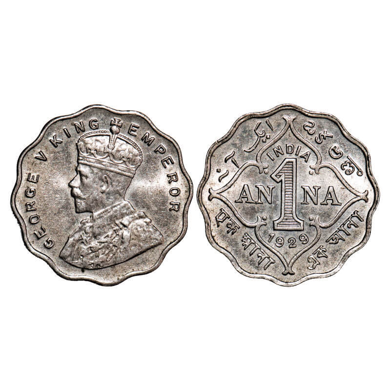 George V, Copper-Nickel, 1 Anna, 1929, Calcutta Mint, No dot. F. Prid 935. GK 1162. About Uncirculated. Scarce.