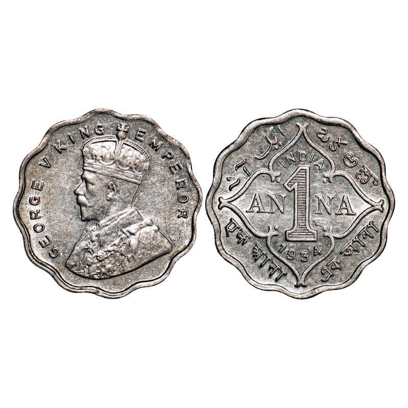 George V, Copper-Nickel, 1 Anna, 1934, Calcutta Mint, No dot, Ghost on Rev. F. Prid 938. GK 1165. Uncirculated. Scarce.