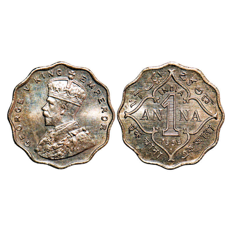 George V, Copper-Nickel, 1 Anna, 1935, Calcutta Mint, No dot. F. Prid 939. GK 1167. Uncirculated. V...
