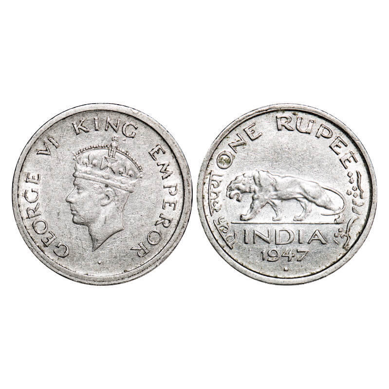 George VI, Nickel, Rupee, 1947, Bombay Mint, E/IV, Square mint mark. F. Prid Unlisted. GK Unlisted. Extremely Fine. Rare.