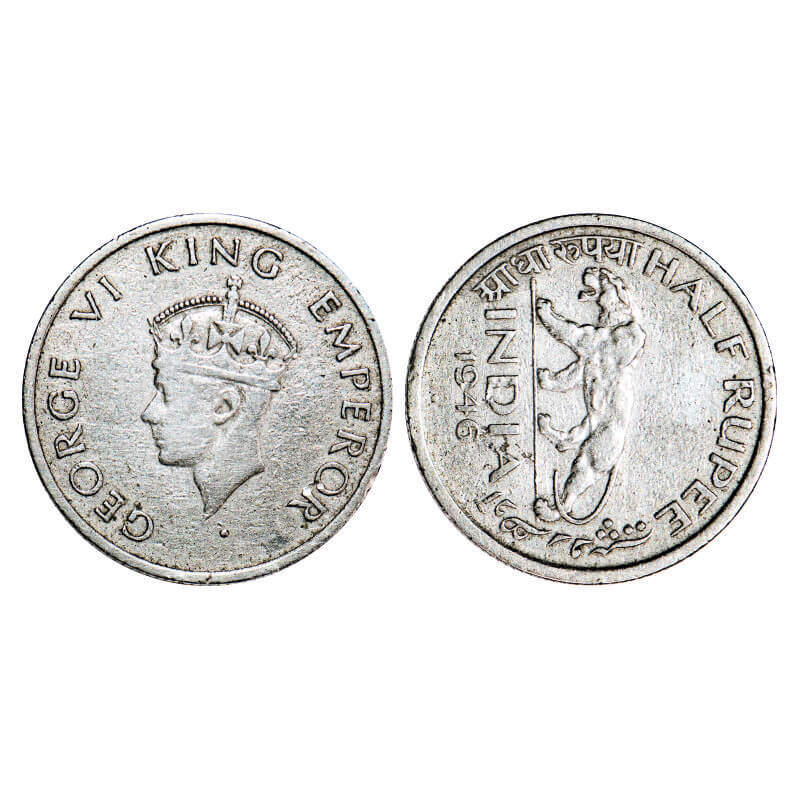| George VI, Nickel, Half Rupee, 1946, Bombay Mint, C/IV, Head Type II, Diamond mint mark, Milled edge, Error 3āo clock on Rev. F. Prid 866. GK 1321. Very Fine. Rare. |