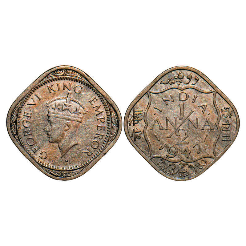 George VI, Copper-Nickel, 1/2 Anna, 1946, Bombay Mint, Dots by India, Dash-Dot-Dash, Tiny Diamond s...