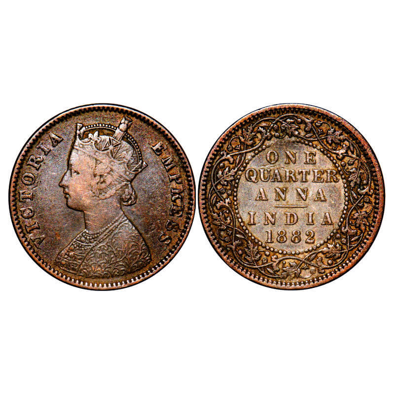 Victoria Empress, Copper, Quarter Anna, 1882, Calcutta Mint, B/II, 'C' incused. F. Prid 615. GK 835...
