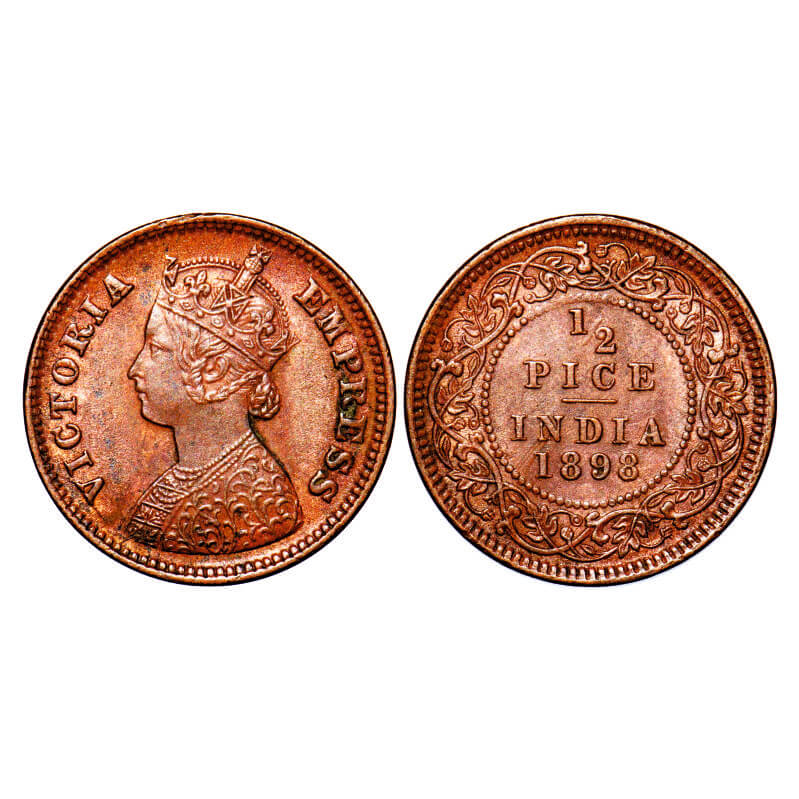 Victoria Empress, Copper, 1/2 Pice, 1898, Calcutta Mint, A/I, No mint mark. F. Prid 731. GK 878. Almost Uncirculated. Very Scare.