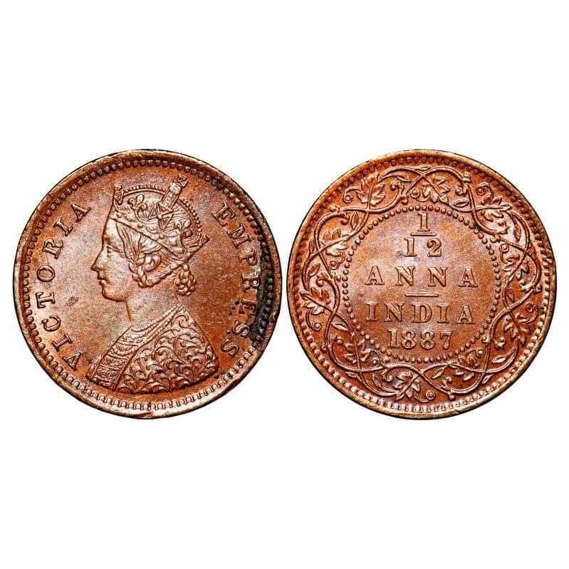 Victoria Empress, Copper, 1/12 Anna, 1886, Calcutta Mint, Obv B, 'C' incused. F. Prid 791. GK 902. ...