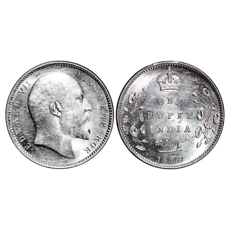 Edward VII, Silver, Rupee, 1906, Calcutta Mint, No mint mark. F. Prid 192. GK 938. Mint State with original mint luster. Rare.