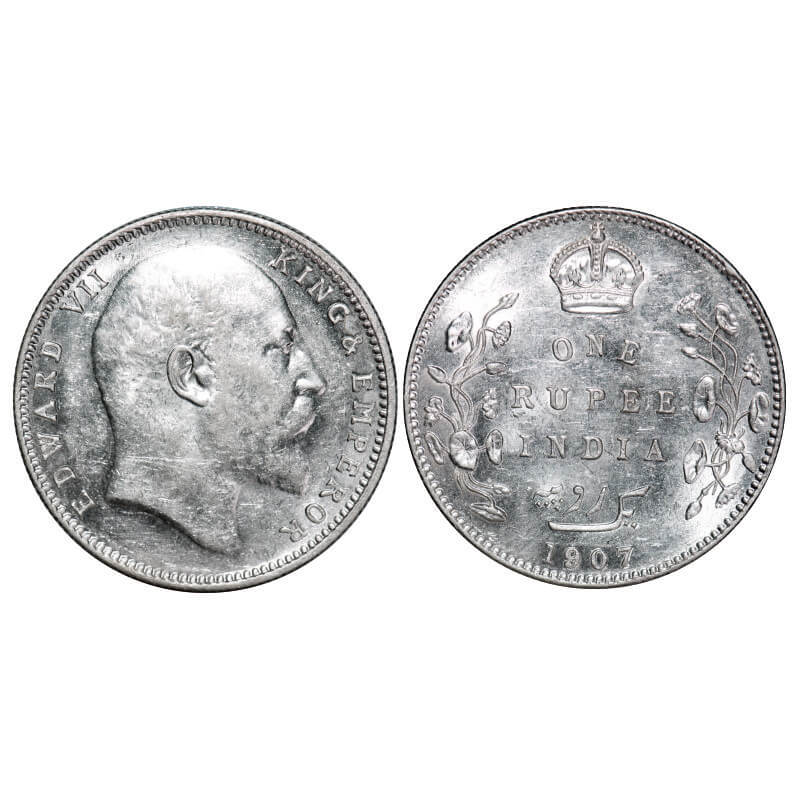 Edward VII, Silver, Rupee, 1907, Bombay Mint, 'B' incused and dot. F. Prid 203. GK 944. Brilliant Uncirculated with original mint luster. Rare.