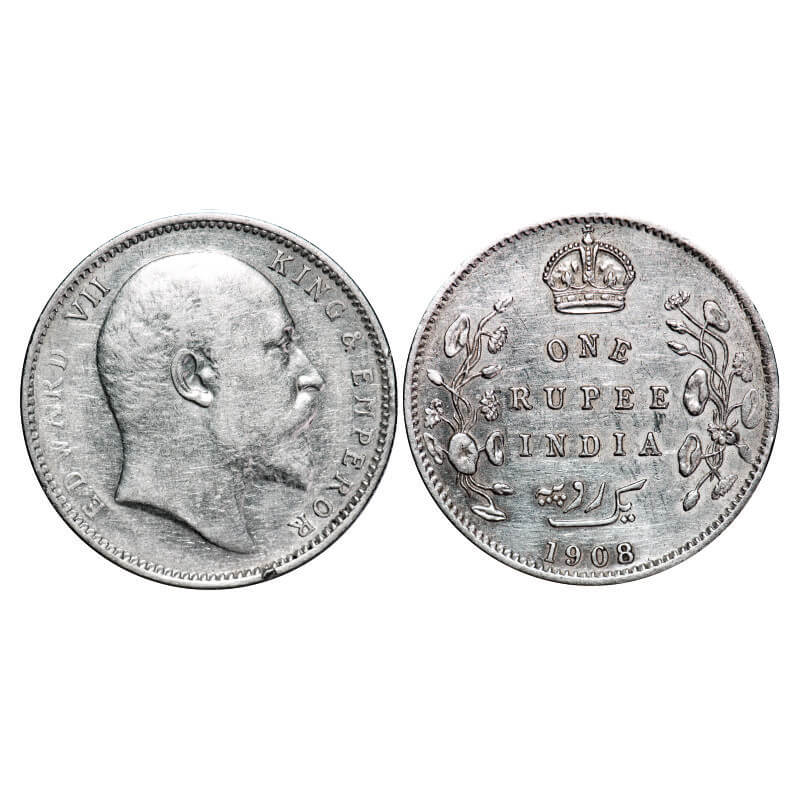 Edward VII, Silver, Rupee, 1908, Calcutta Mint, No mint mark. F. Prid 194. GK 946. Extremely Fine. Scarce.