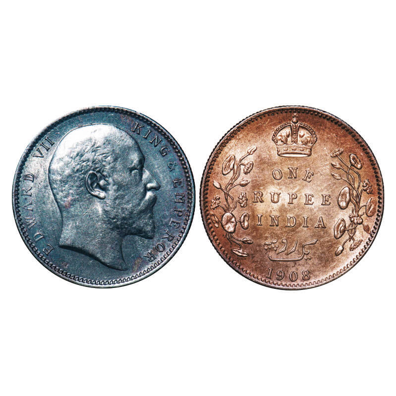 Edward VII, Silver, Rupee, 1908, Calcutta Mint, No mint mark. F. Prid 194. GK 946. Almost Uncirculated, Toned. Very Scarce.