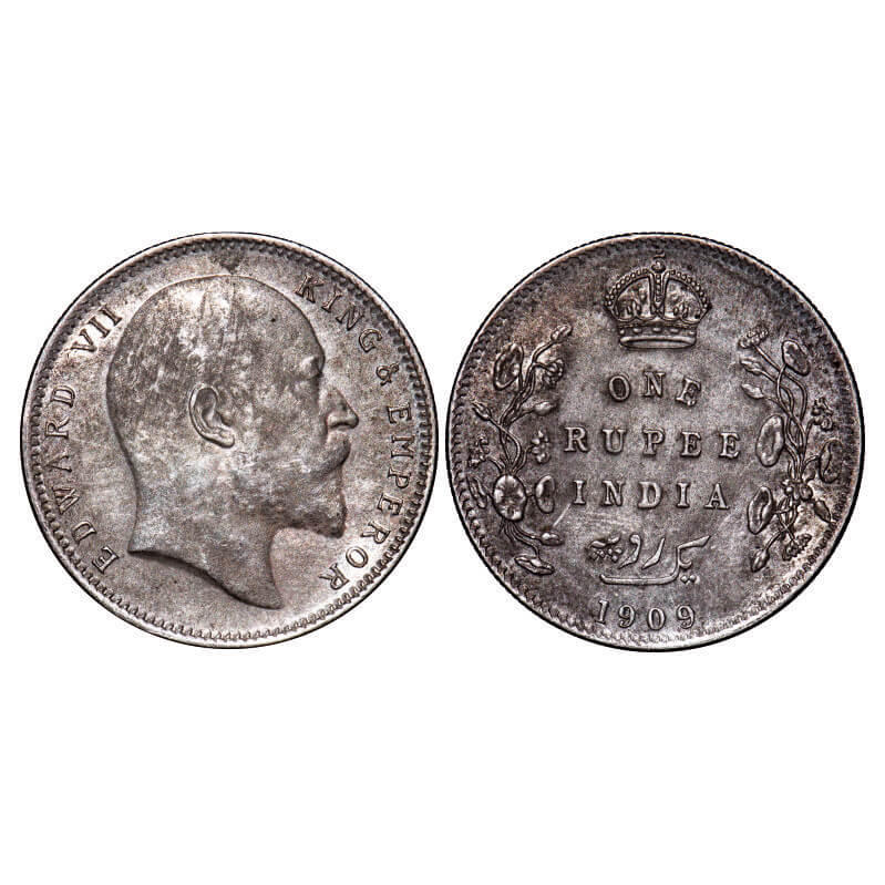 Edward VII, Silver, Rupee, 1909, Calcutta Mint, No mint mark. F. Prid 195. GK 950. About Uncirculated, Toned. Very Scarce.