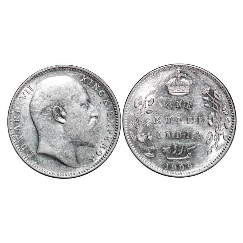 Edward VII, Silver, Rupee, 1909, Bombay Mint, 'B' incused and dot. F. Prid 205. GK 952. Uncirculated. Rare.