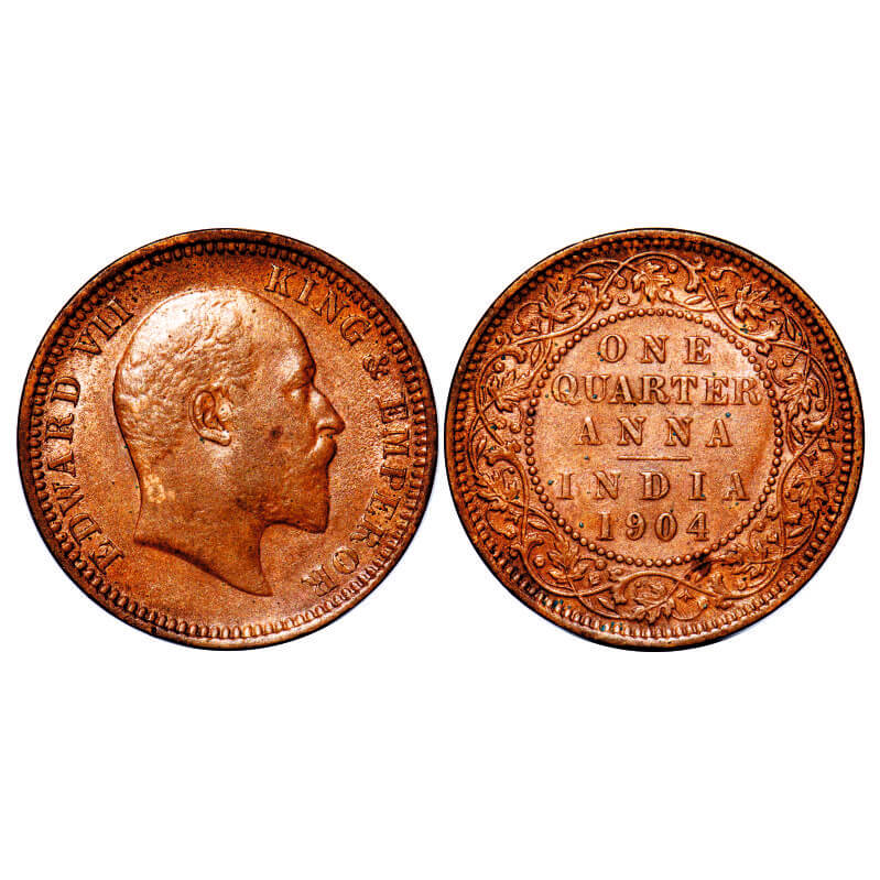 Edward VII, Copper, Quarter Anna, 1904, Calcutta Mint, No mint mark. F. Prid 647. GK 995. Uncirculated. Scarce.