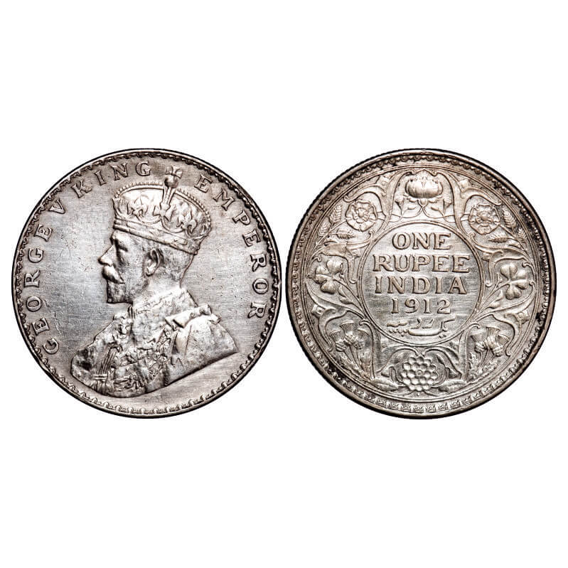 George V, Silver, Rupee, 1912, Calcutta Mint, No dot, Re-Drawn Elephant with long tusk. F. Prid 208...