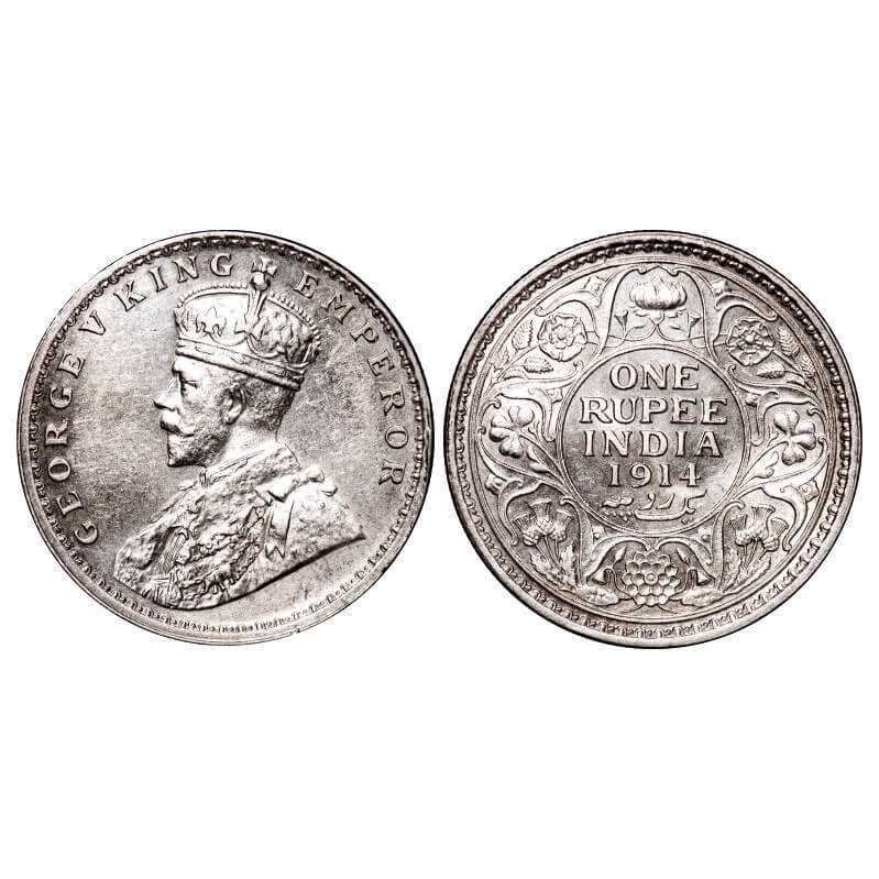 George V, Silver, Rupee, 1914, Bombay Mint, Dot. F. Prid 220. GK 1030. Brilliant Uncirculated. Rare...