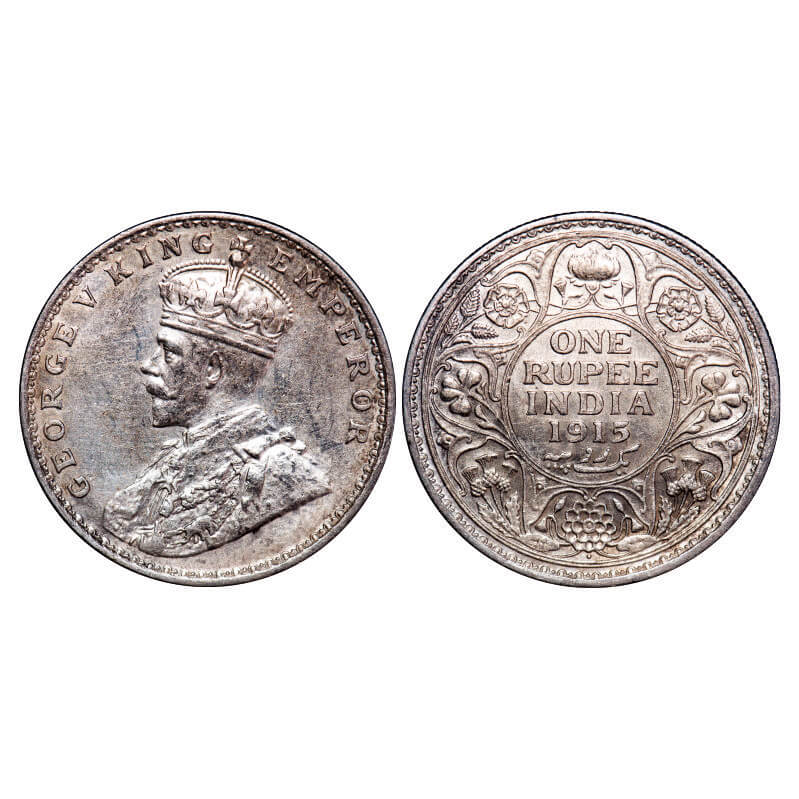 George V, Silver, Rupee, 1915, Bombay Mint, Dot. F. Prid 221. GK 1032. Extremely Fine+. Scarce.