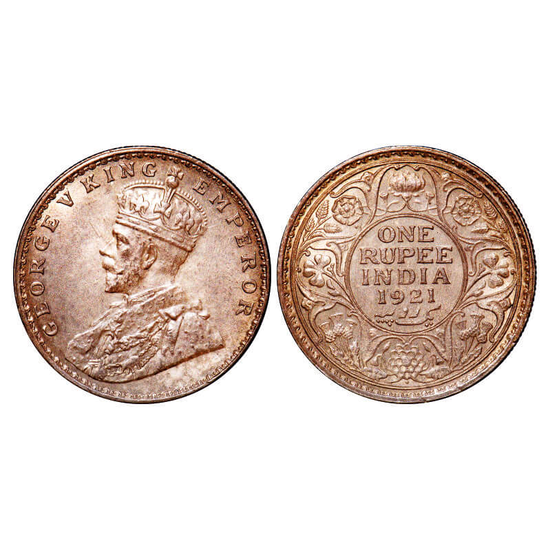 George V, Silver, Rupee, 1921, Bombay Mint, Dot. F. Prid 227. GK 1043. Brilliant Uncirculated with ...