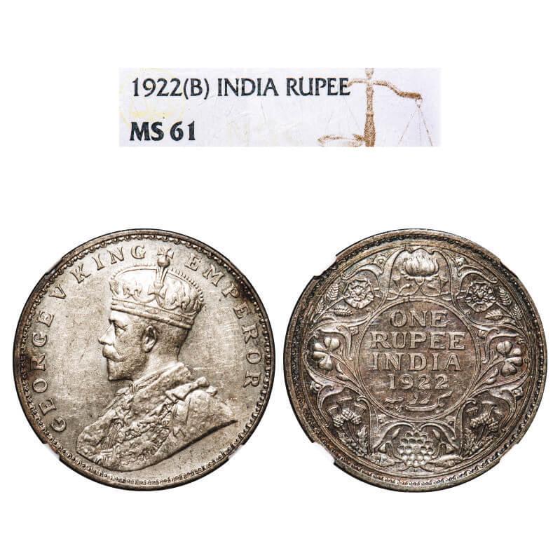 George V, Silver, Rupee, 1922, Bombay Mint, Dot. F. Prid 228. GK 1044. NGC Slabbed MS 61. Very Rare.