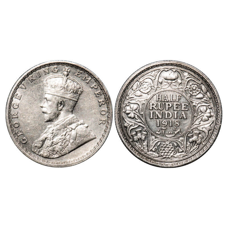 George V, Silver, Half Rupee, 1918, Bombay Mint, Dot. F. Prid 342. GK 1056. Mint State. Very Scarce...