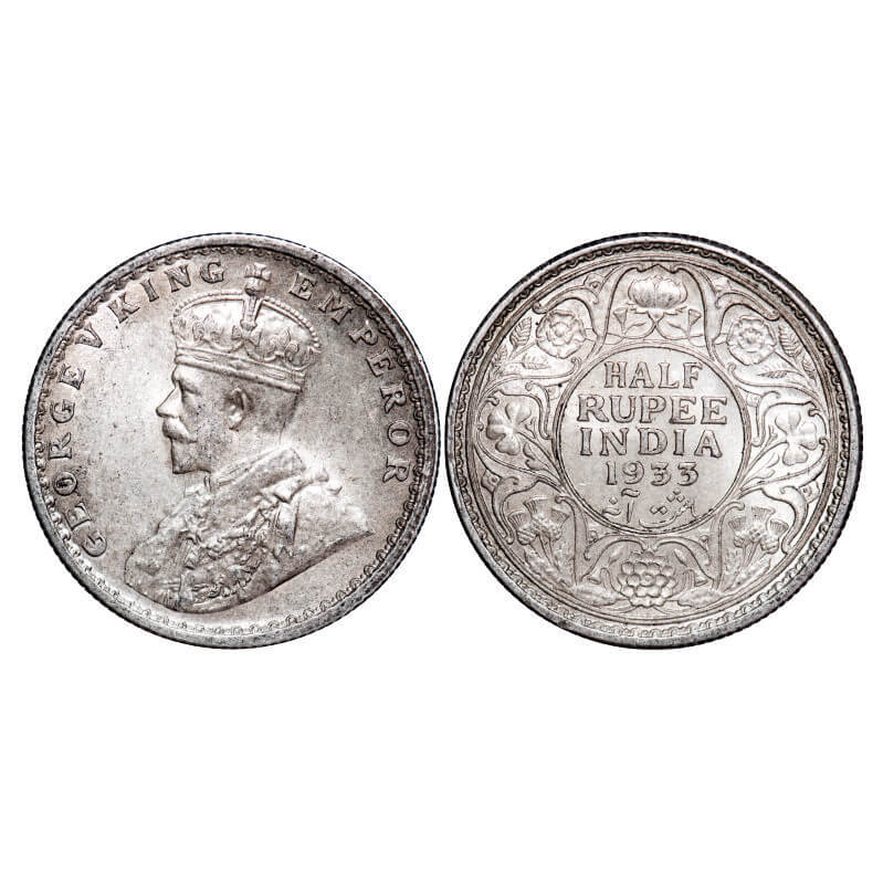 George V, Silver, Half Rupee, 1933, Calcutta Mint, No dot. F. Prid 333. GK 1073 Uncirculated, Toned. Very Scarce.