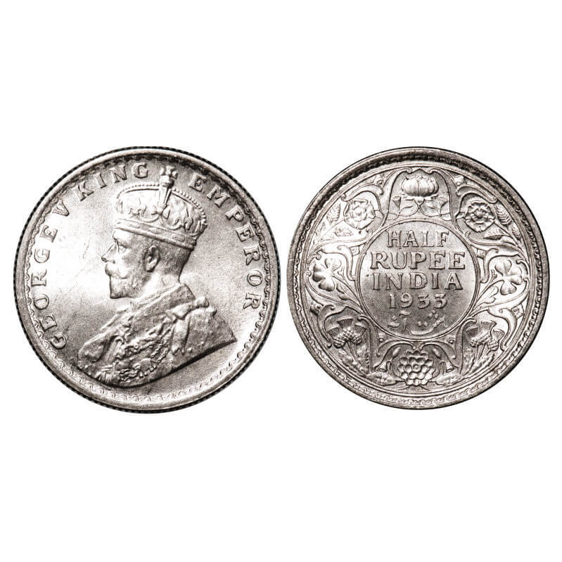 George V, Silver, Half Rupee, 1933, Calcutta Mint, No dot. F. Prid 333. GK 1073. Mint State. Rare....