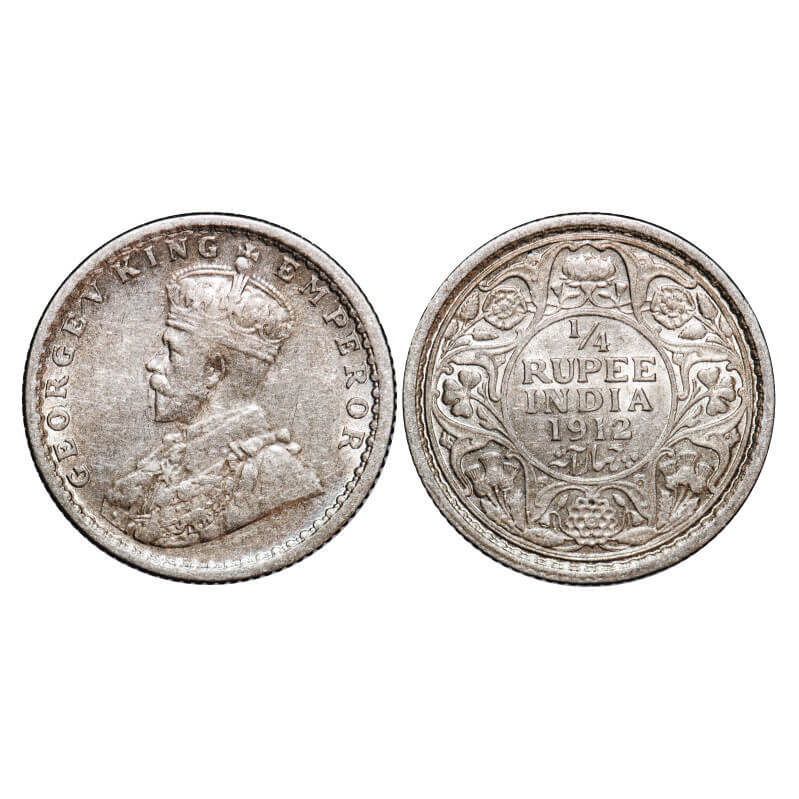 George V, Silver, 1/4 Rupee, 1912, Calcutta Mint, No dot. F. Prid 441. GK 1081. Extremely Fine. Sca...