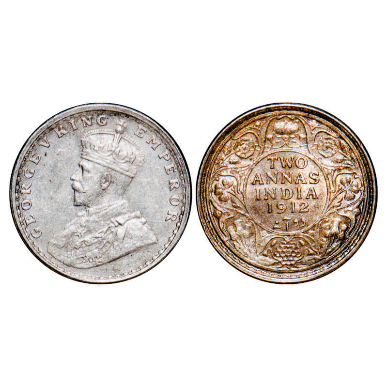 George V, Silver, 2 Annas, 1912, Bombay Mint, Dot, Re-Drawn Elephant. F. Prid 571. GK 1109. Brilliant Uncirculated. Very Scarce.