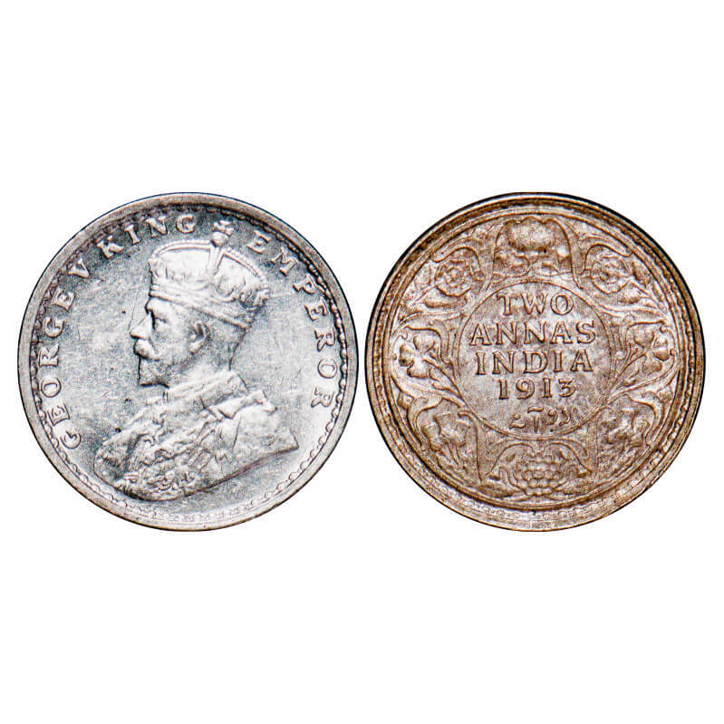 George V, Silver, 2 Annas, 1913, Bombay Mint, Dot. F. Prid 572. GK 1111. Uncirculated, Rev Toned. Very Scarce.