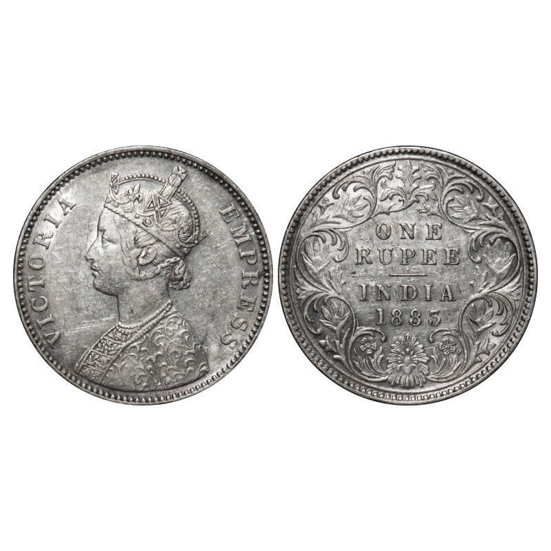 | Victoria Empress, Silver, Rupee, 1883, Bombay Mint, A3/I, 'B' raised, The jabot has 3 & 3/4 panel, 'V' raised looks like reversed tick, Flat 1. F. Prid 164. GK 483. Extremely Fine. Very Scarce. |