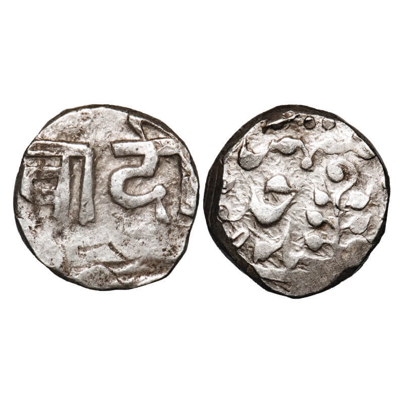 Kishangarh, Silver Chandi Rupee, 10.84g, Anonymous Hammered Coinage, with Nagari word 'Chandi' on obverse, with RY (24), Jhar mint mark on reverse. KM 12.1. About Very Fine, Scarce.