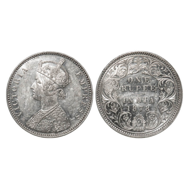 Victoria Empress, Silver, Rupee, 1878, Bombay Mint, A3/II(ii), Dot, Inclined 1. F. Prid Unlisted. G...