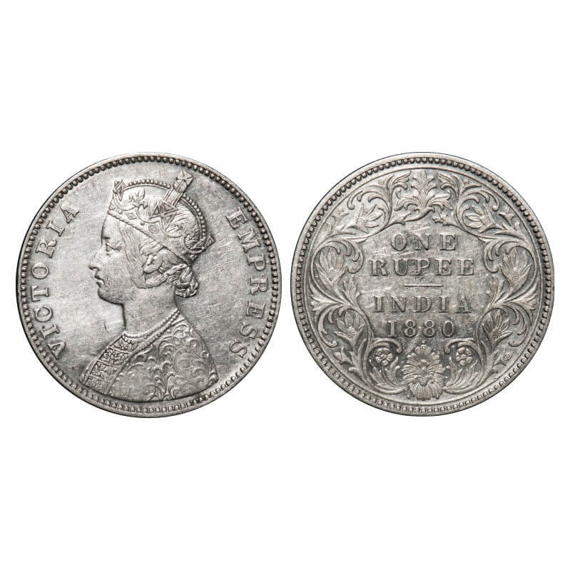 Victoria Empress, Silver, Rupee, 1880, Bombay Mint, A3/I, Dot, Flat 1. F. Prid 156. GK 466. Extremely Fine. Scarce.